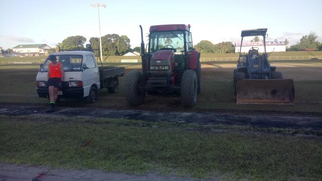 FDS have mobilised their equipment and staff to commence the main sports field construction at Teufavia Stadium. Amongst sending over machinery, earth moving equipment, there has been lots of sand sent over - many many cubic metres of sand. This is to ensure a top notch job is completed at the end of the day and this sports stadium can then hold international rugby games which are up to IRB standard.